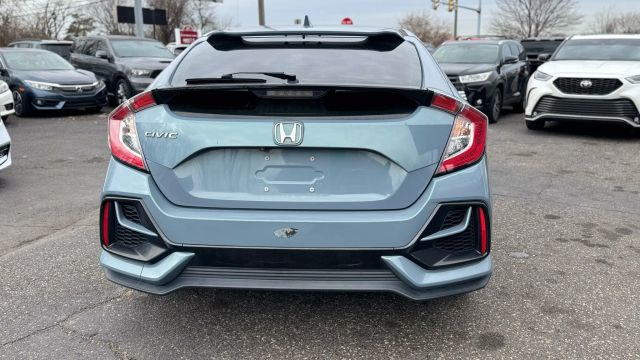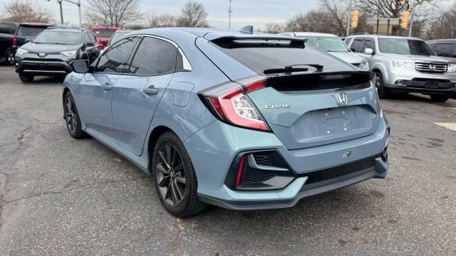 • Firstly, the gray exterior gives this 2020 Honda Civic EX-L Hatchback a sleek and modern appearance.