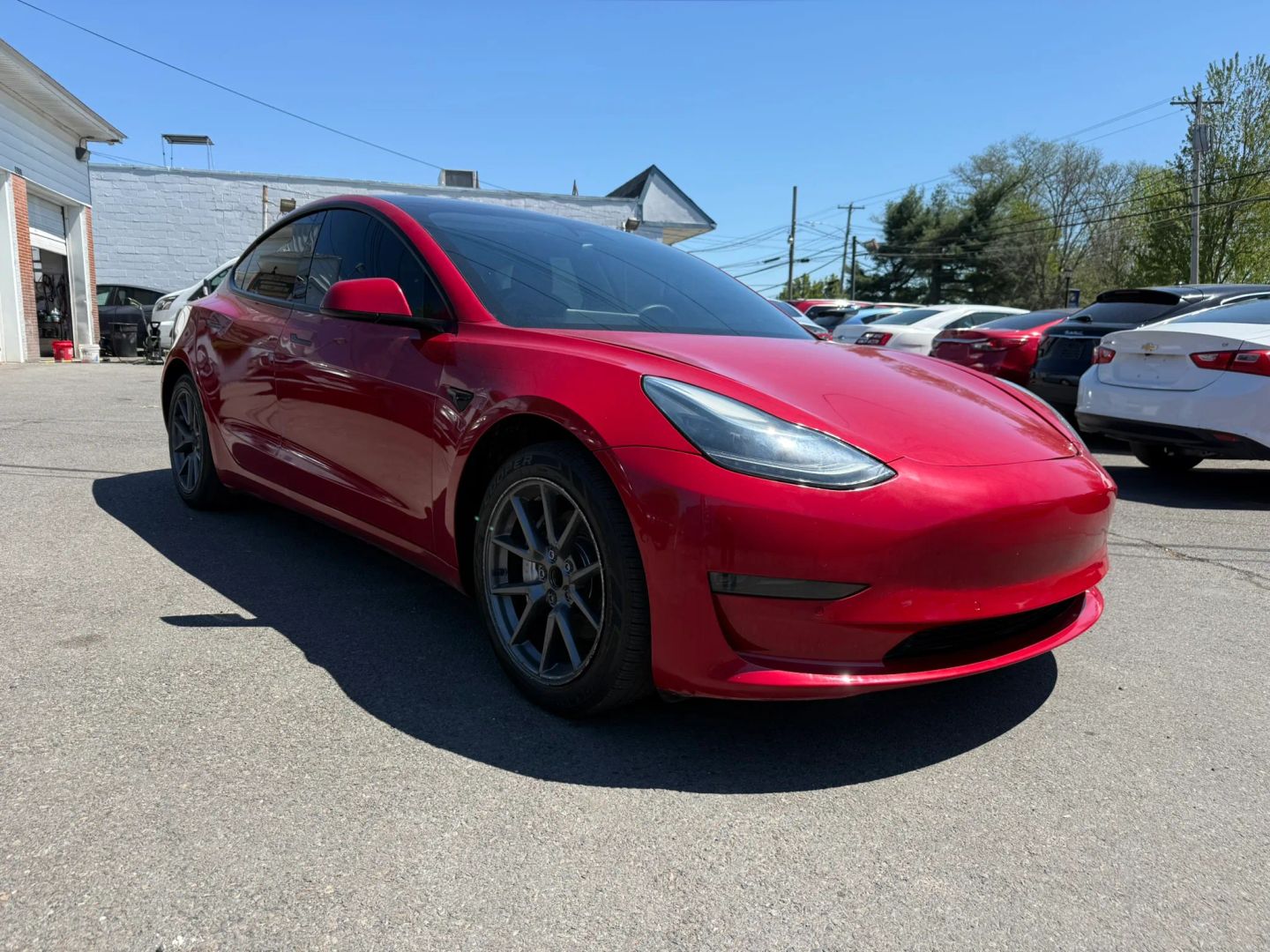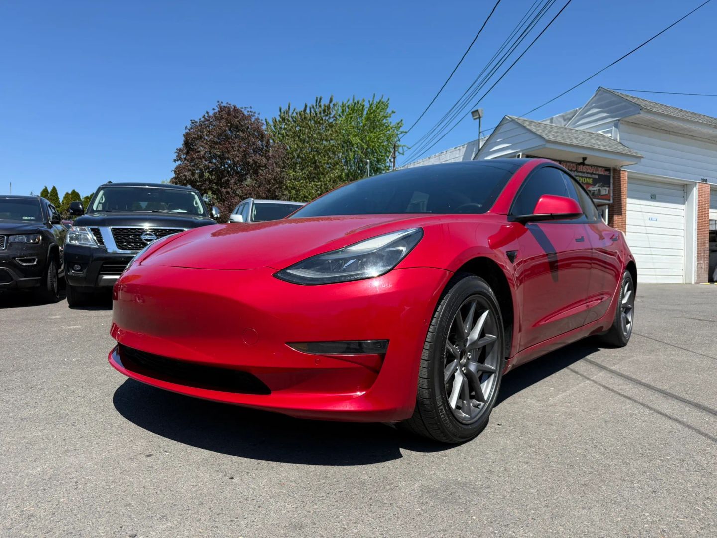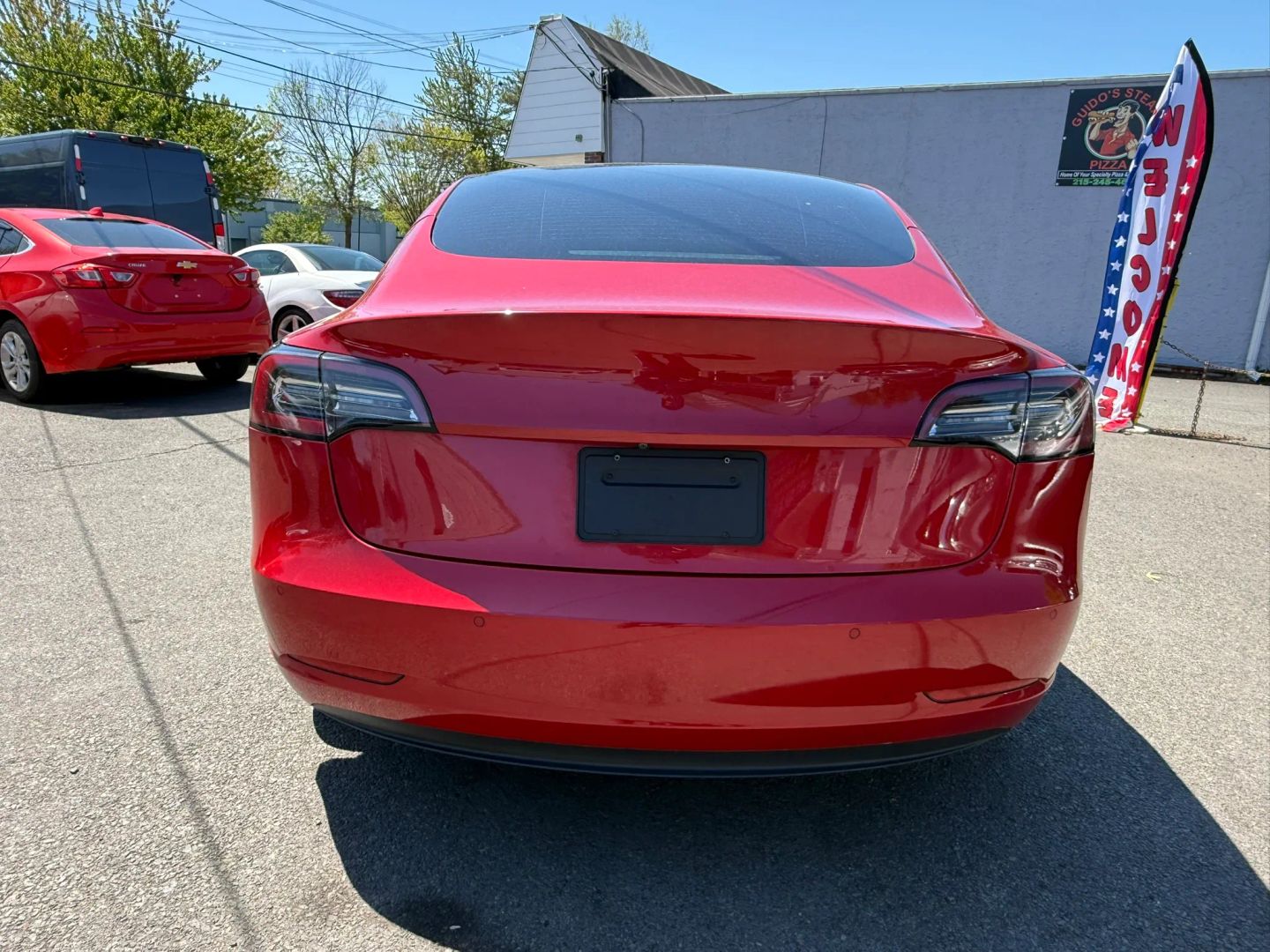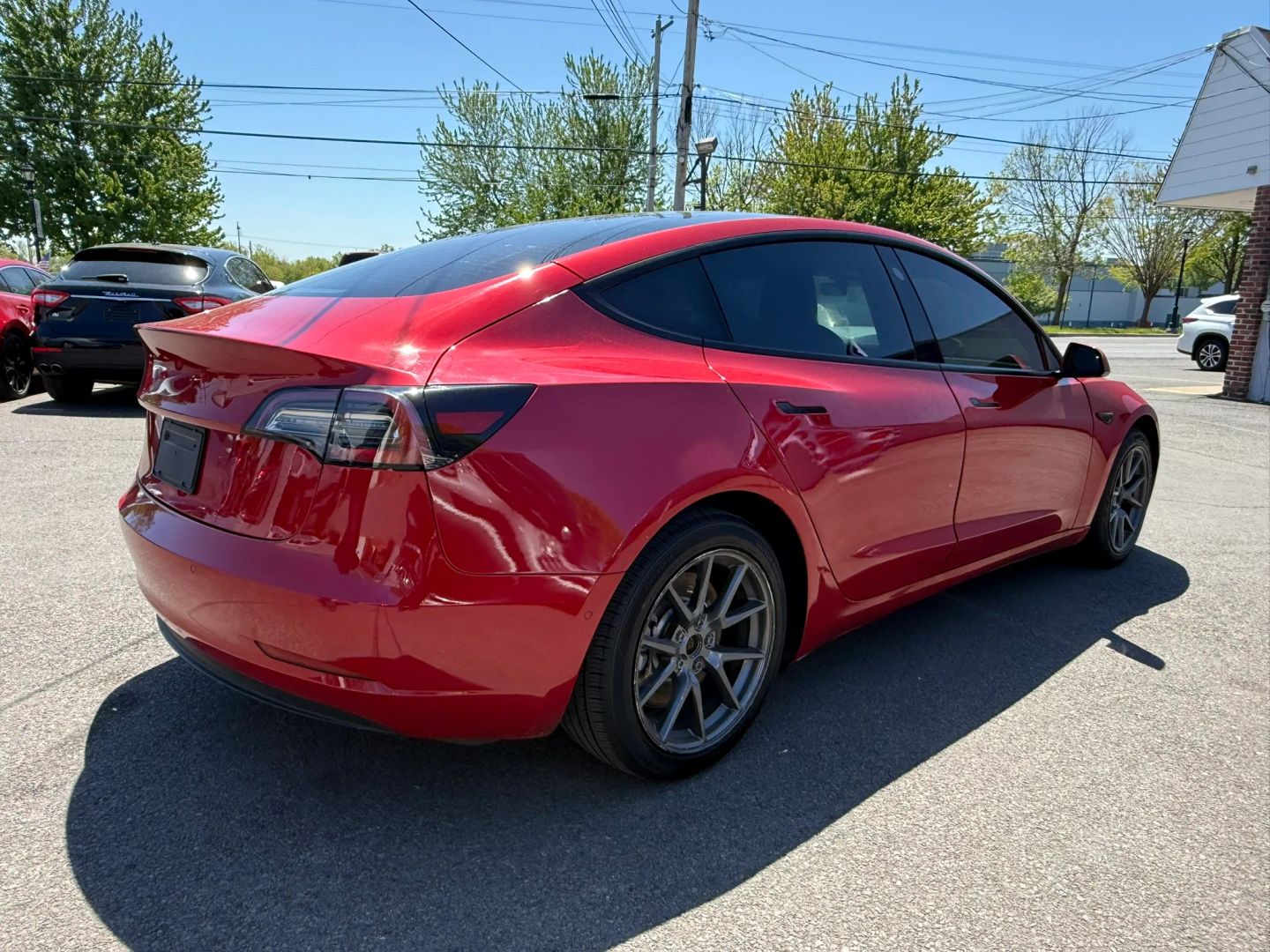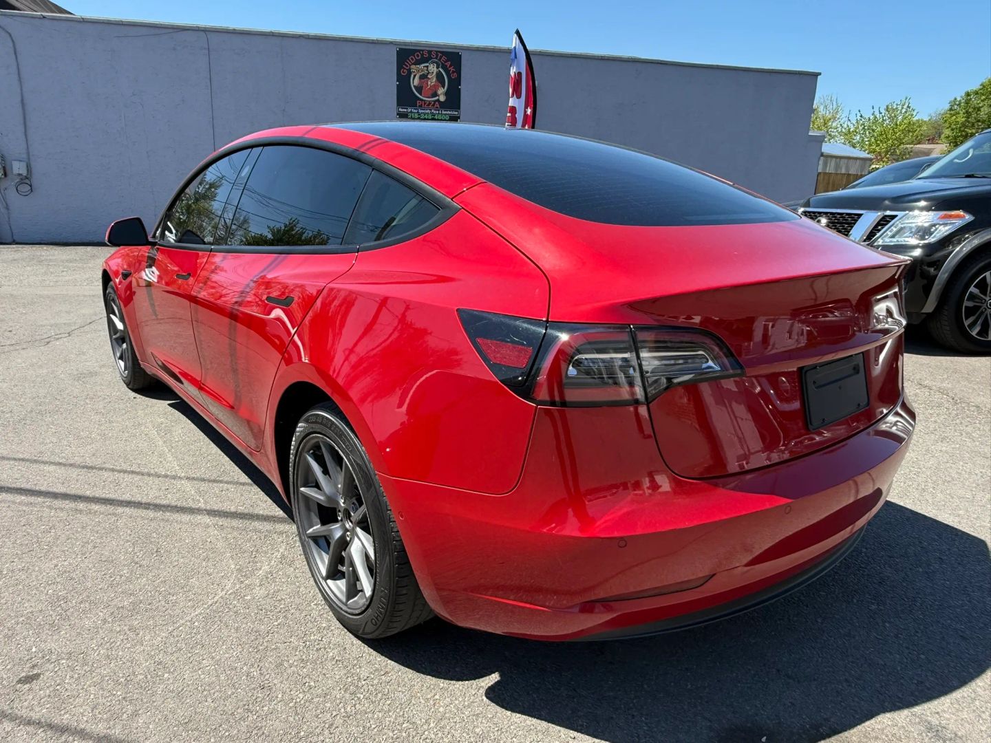- Eye-catching red exterior adds a bold and dynamic look to the Tesla Model 3.