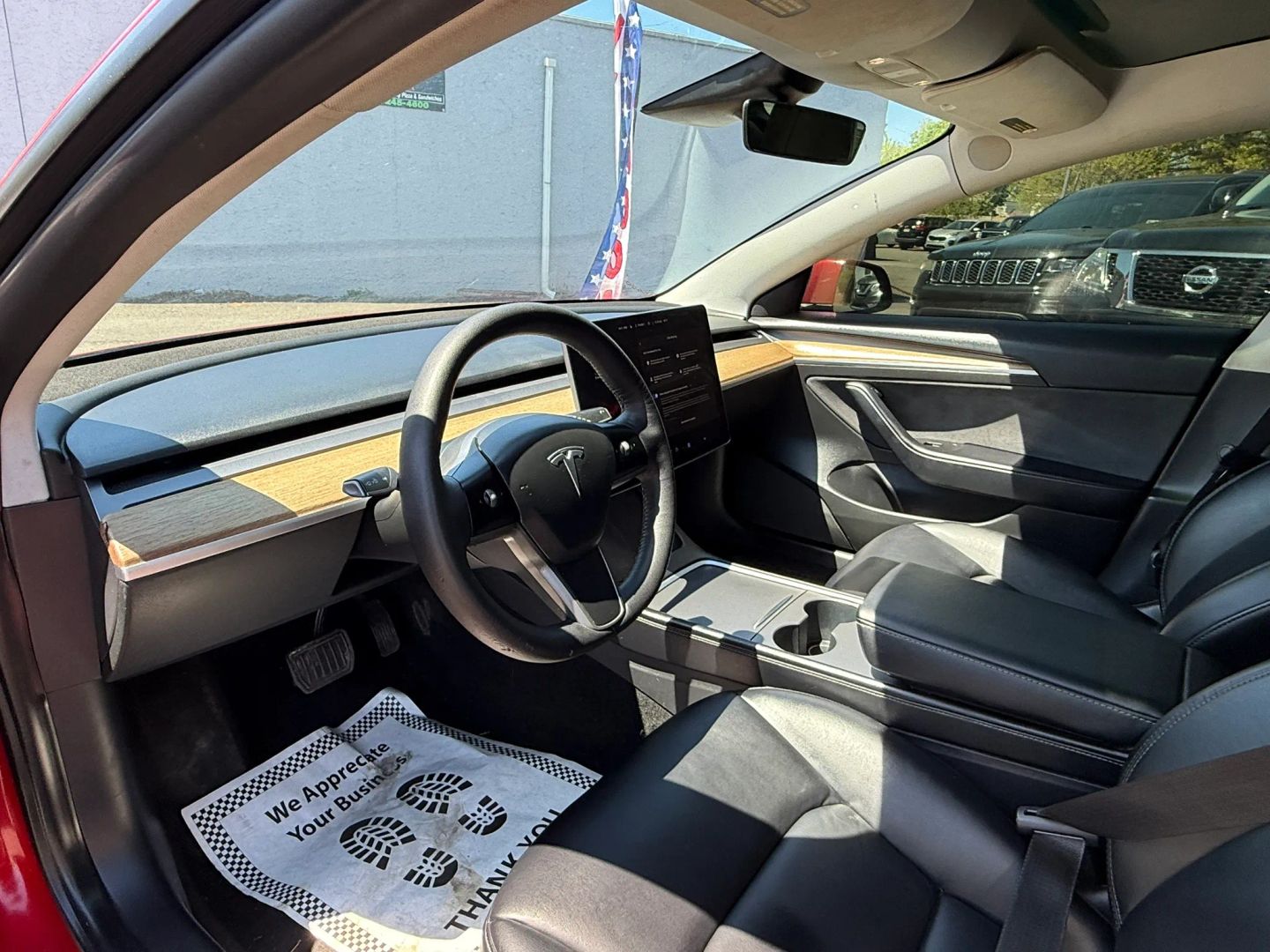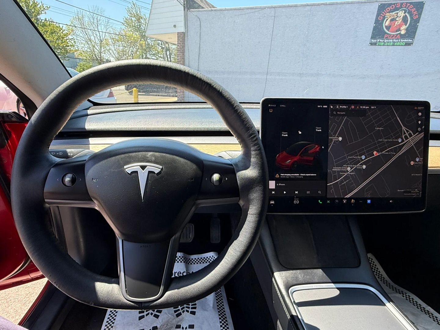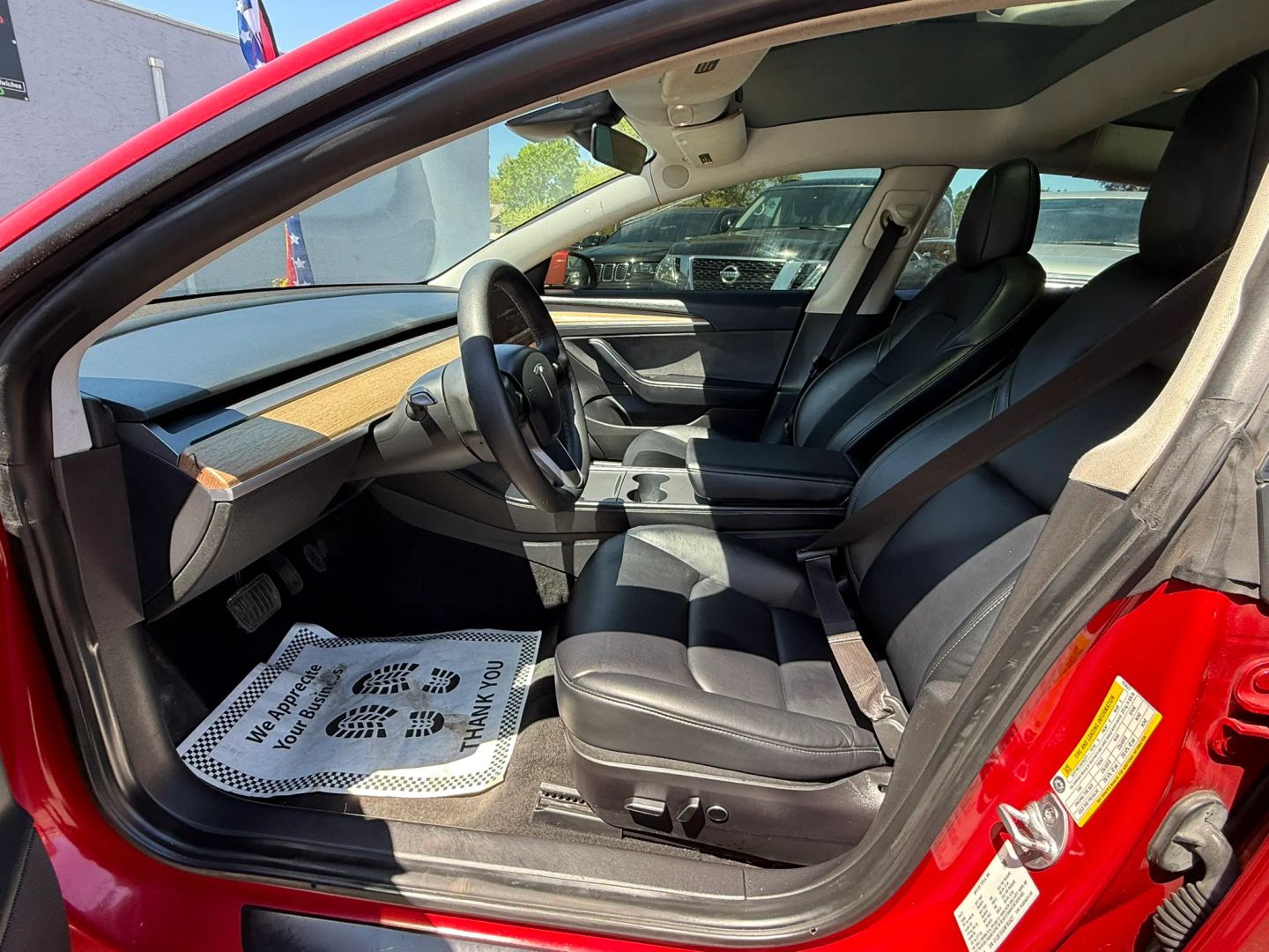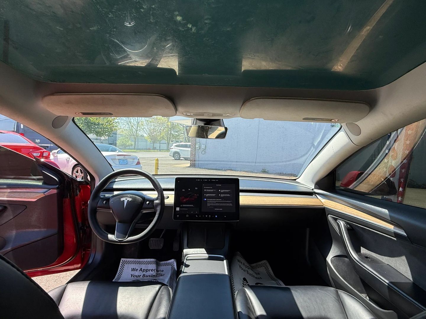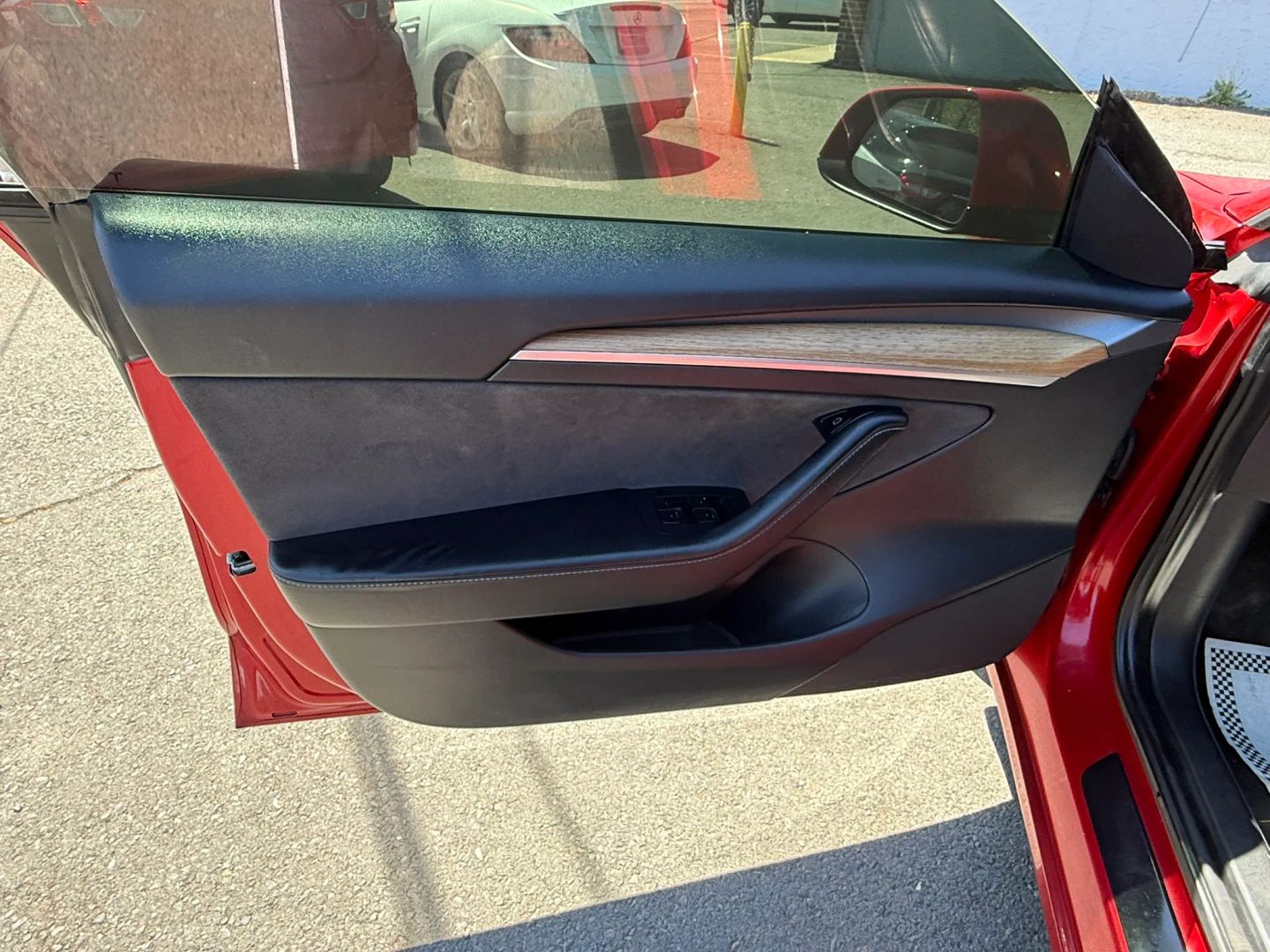 - Eye-catching red exterior adds a bold and dynamic look to the Tesla Model 3.
