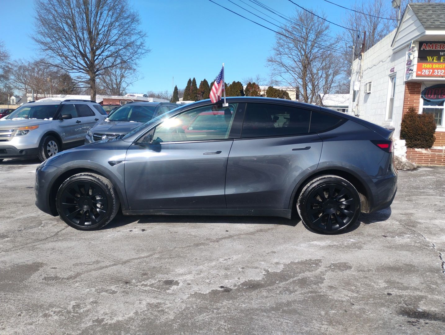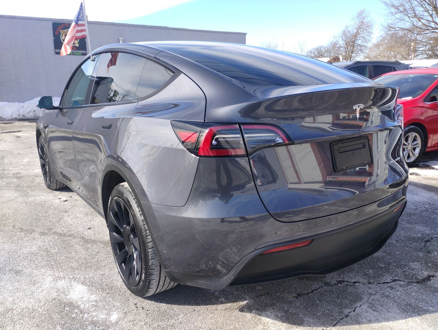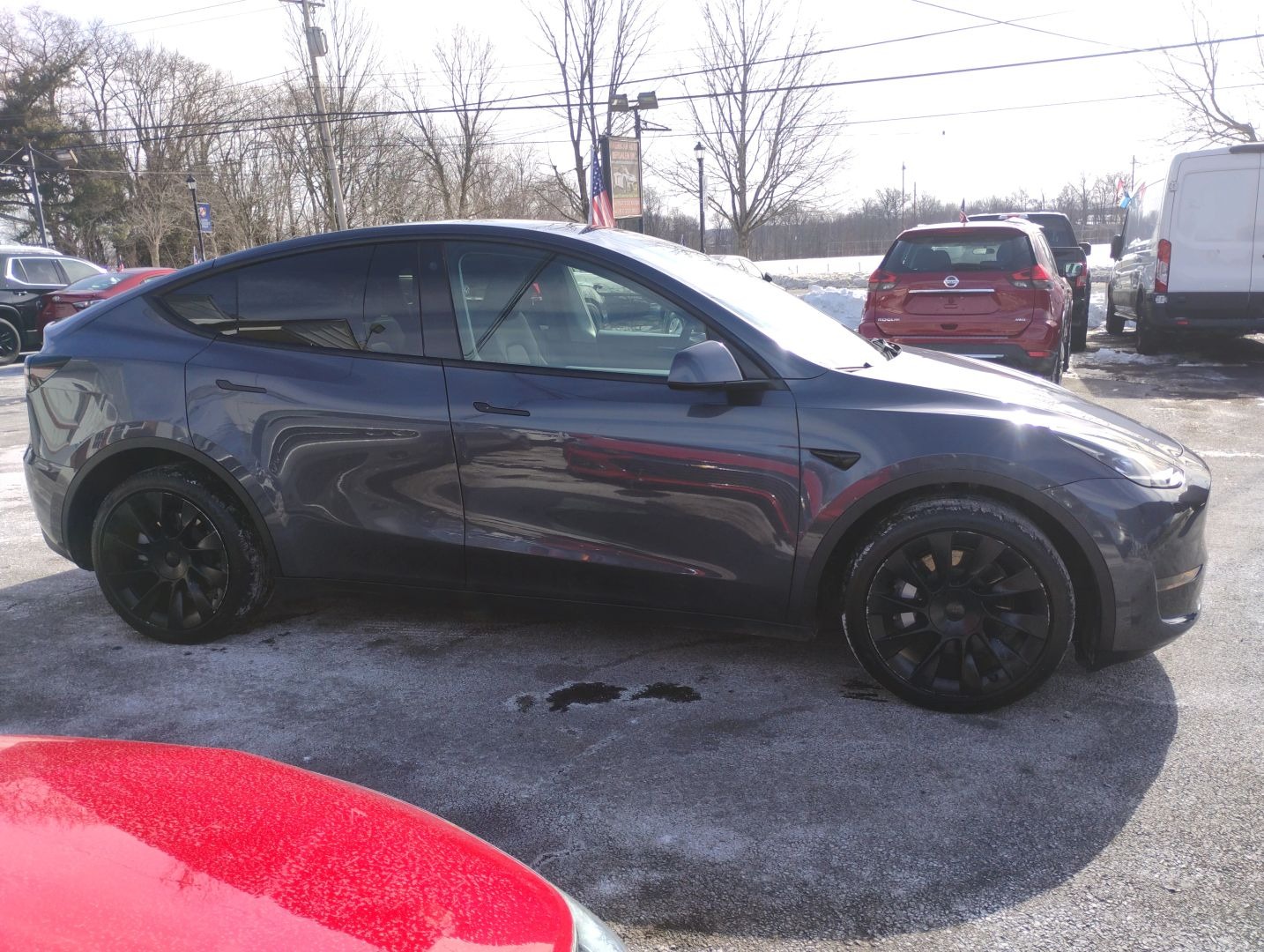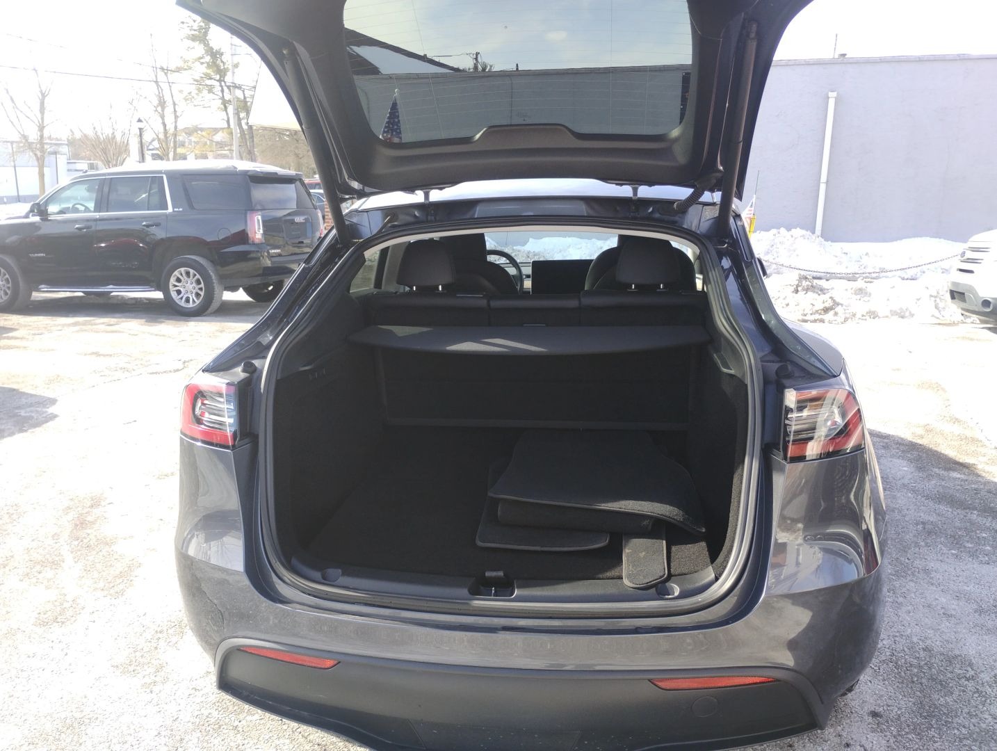 - Firstly, the gray exterior gives this 2023 Tesla Model Y Long Range a sleek and futuristic appearance.